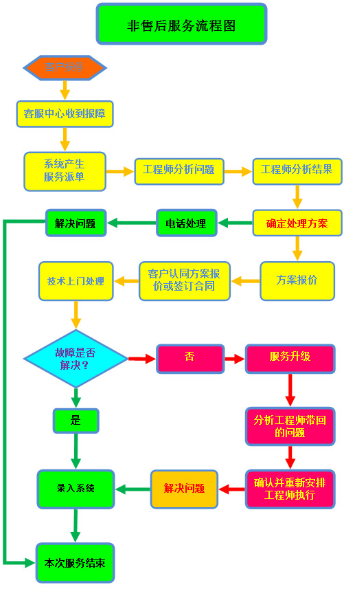 非公司售出产品,也可享受本公司提供快捷的售后服务, 为保障用户可以享受到快捷的服务,我公司特制定以下服务条款及上 图所示流程图(适用于非售后问题处理流程).